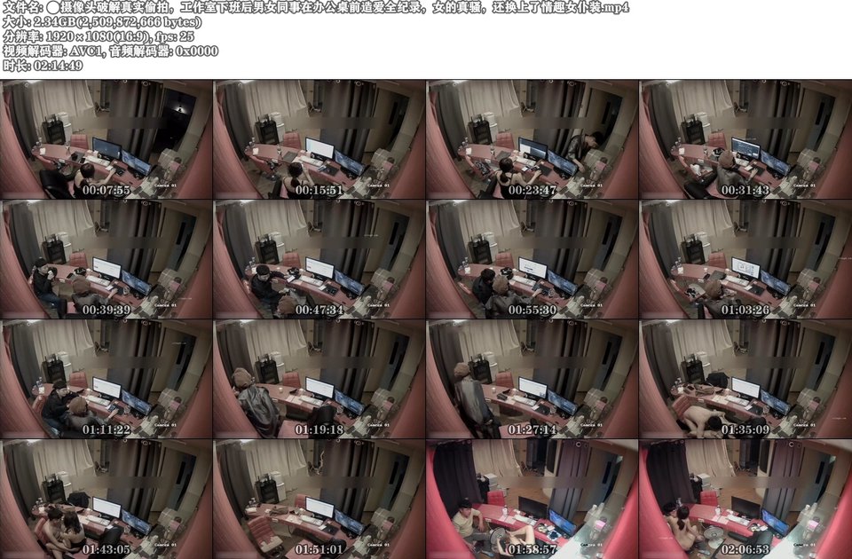 【影片名称】:☀摄像头破解真实偷拍,工作室下班后男女同事在办公桌前造爱全纪录,女的真骚,还换上了情趣女仆装【影片格式】:MP4【影片大小】:2320MB【影片时间】:02:14:19【影片说明】:无码【影片截图】:
